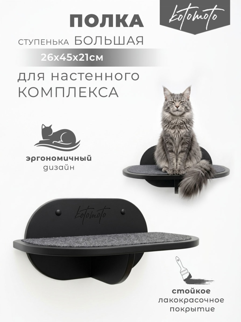 Если вы ищете прочную полку для кошки на стену, элемент для игрового комплекса или решение для обустройства зоны отдыха питомца — модель 450×260 мм от «Котомото» станет практичным и долговечным выбором.